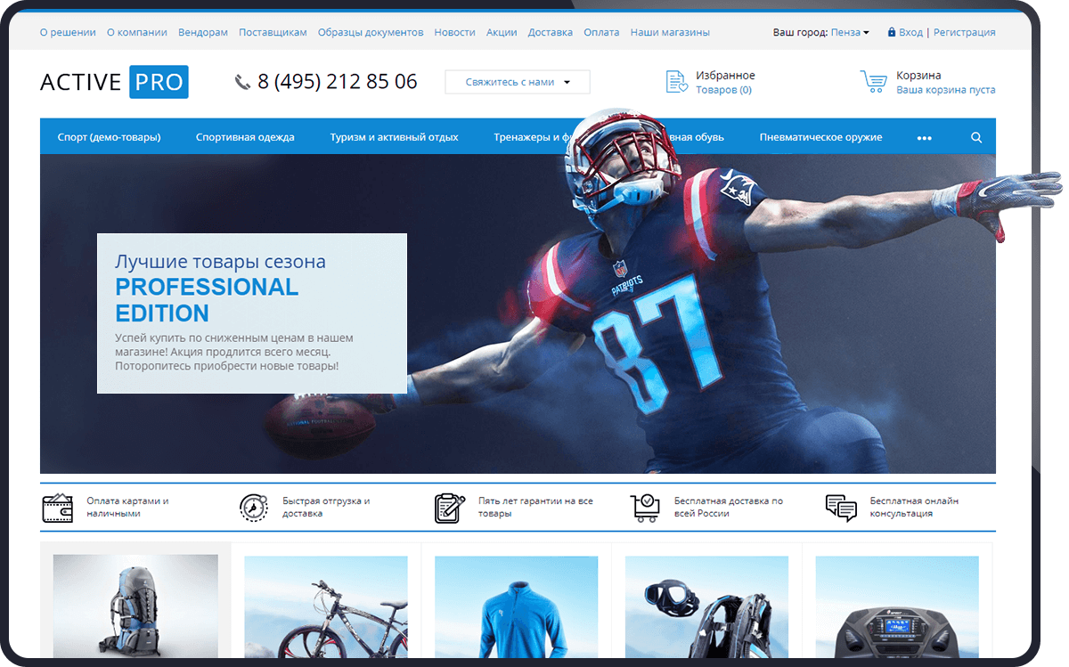 Мощный, функциональный и удобный интернет-магазин спортивных товаров на 1С-Битрикс, разработанный специально для вас.