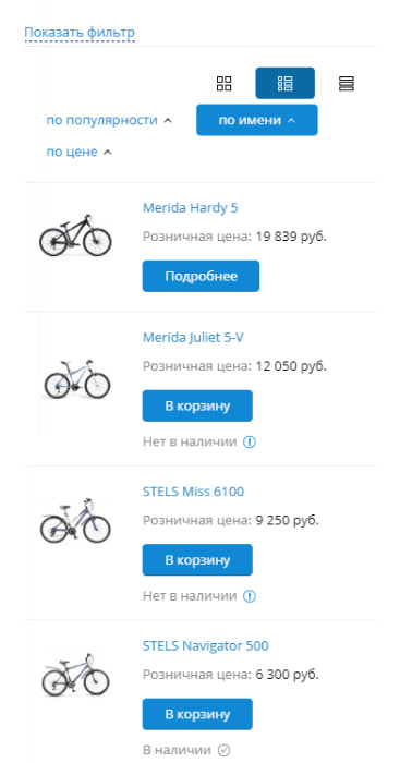 Одной из главных фишек мебельного шаблона ActivePRO можно назвать два вида списка каталога. Список может выглядеть как галерея товаров, так и в виде оптовой сетки с разными типами цен.