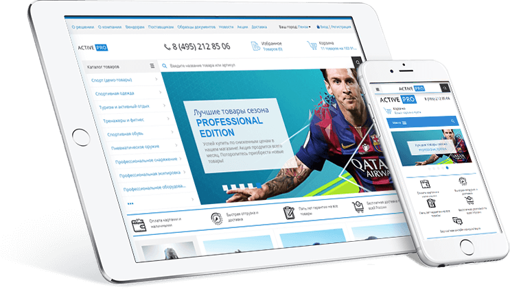 Адаптивный дизайн магазина нужен, чтобы сайт подстраивался под экран посетителя. Покупки в ActivePRO будет одинаково удобно делать как со стационарного компьютера или ноутбука, так и с мобильного телефона.